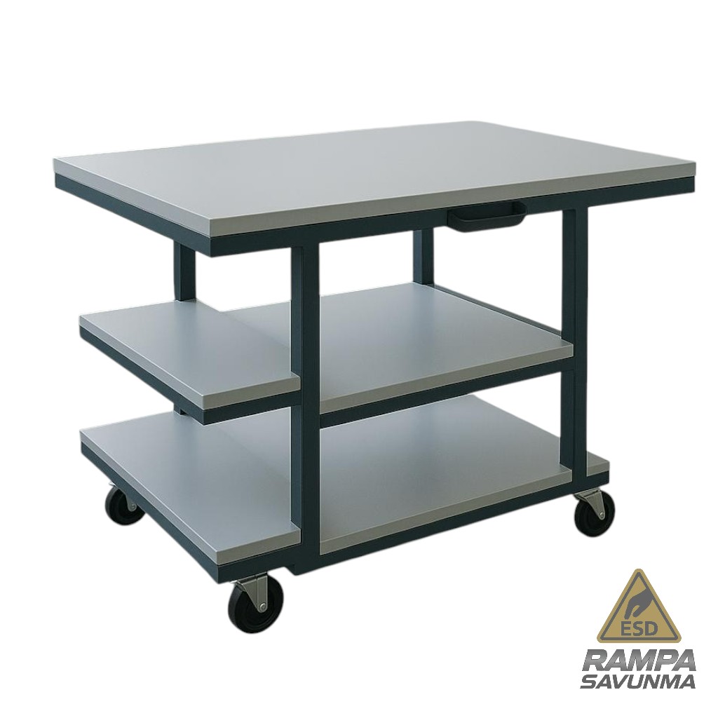 Gövde ve raflar, ESD uyumlu malzemelerle kaplanmıştır veya tamamen iletken plastik/metallerden üretilmiştir. Taşınan ürünlerde statik yük birikimini engeller.
