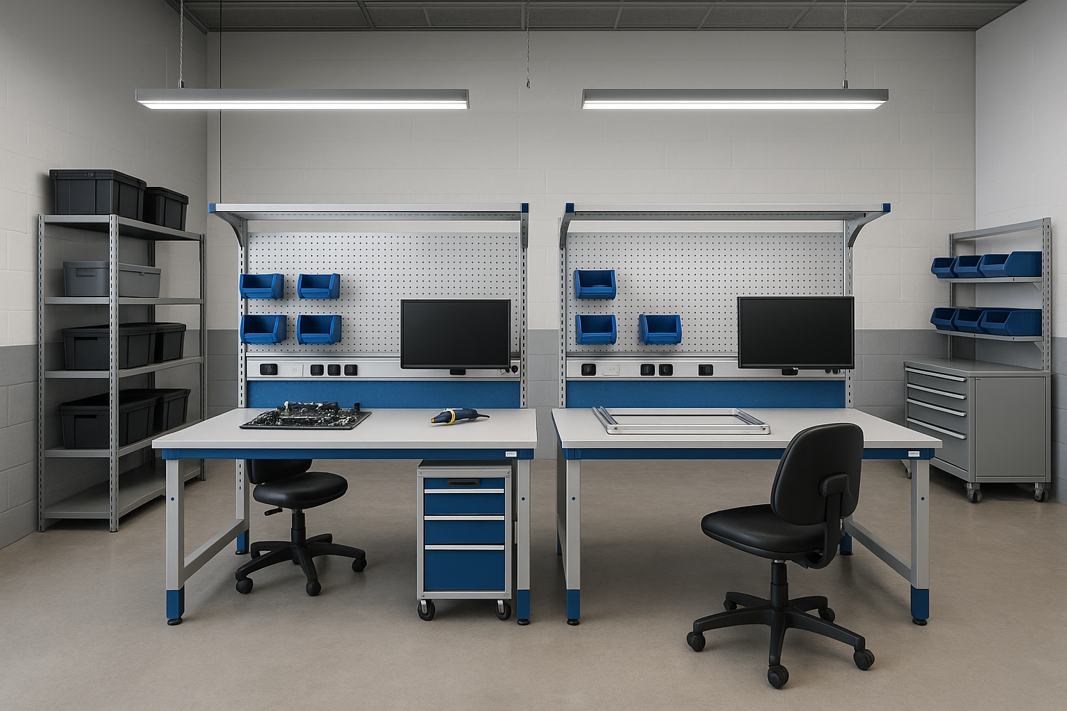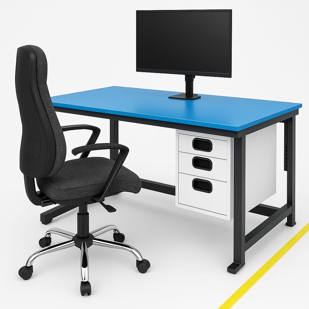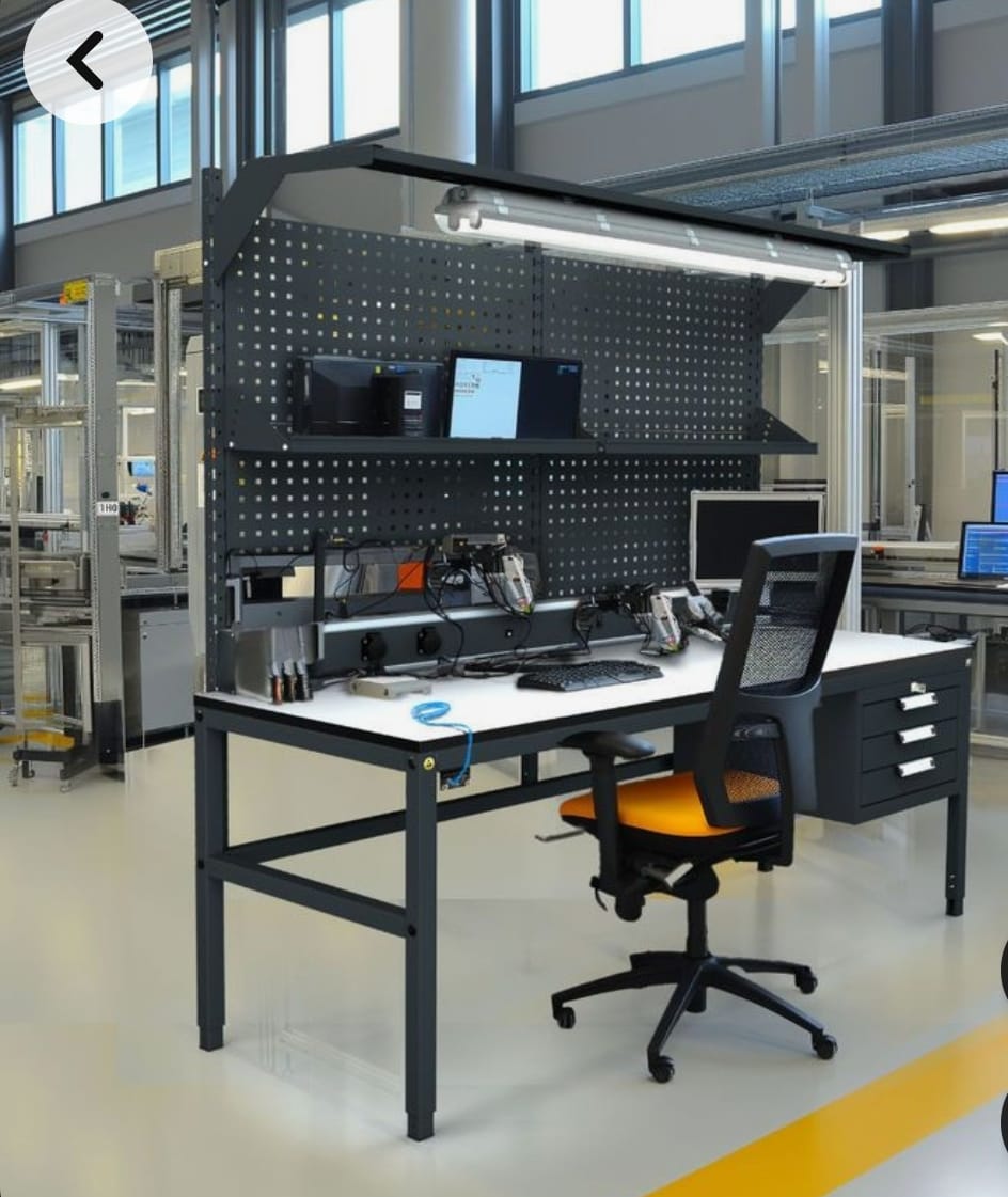 Topraklama Donanımı: Masaya entegre edilen topraklama noktaları sayesinde bileklik, ayak bandı ve masa matı gibi ESD ekipmanlarıyla tam uyum sağlar.
