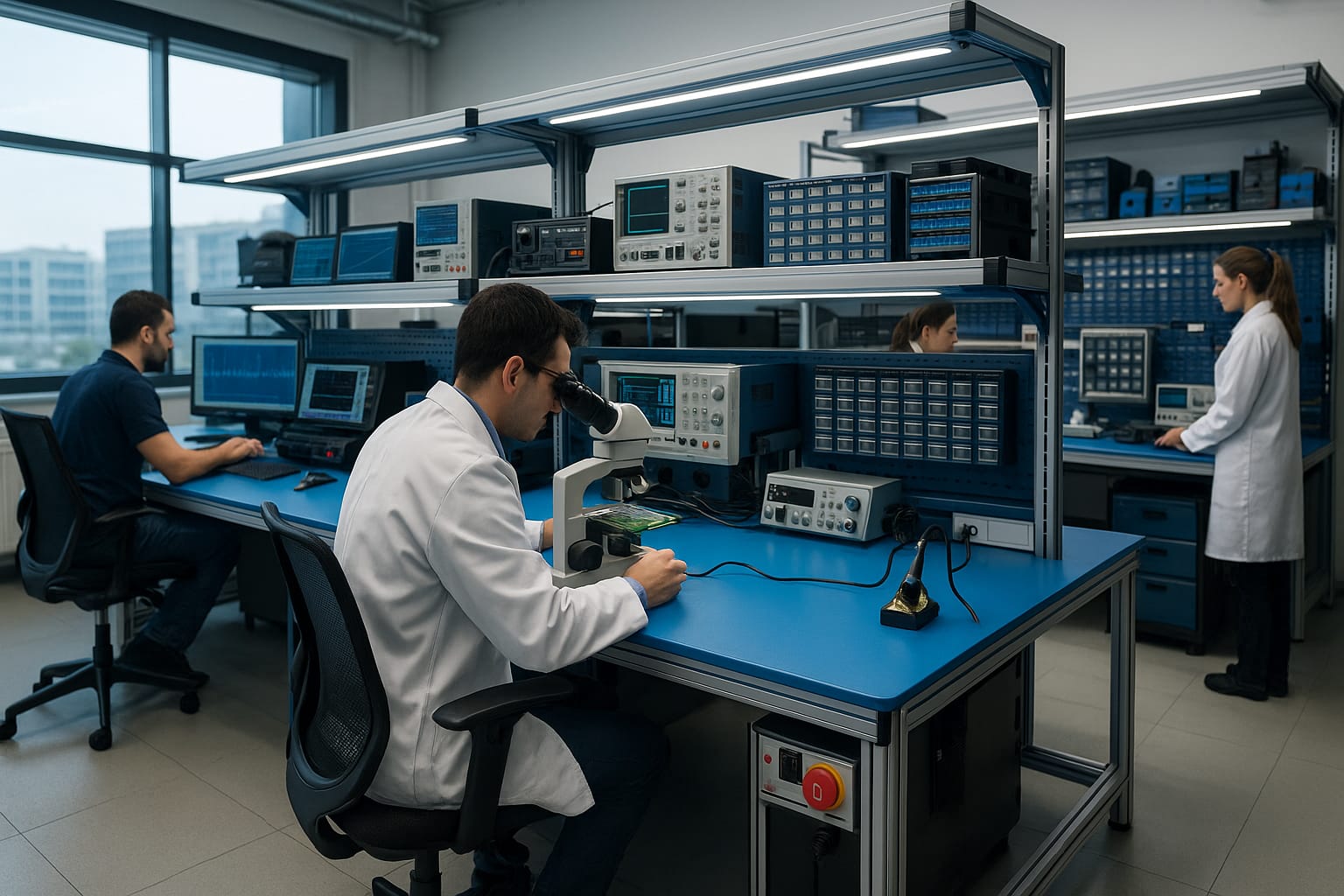 ESD Teknisyen Masası, statik elektrikten kaynaklanan risklere karşı koruma sağlamak üzere özel olarak tasarlanmış, elektronik bakım, onarım ve montaj işlemleri için ideal bir profesyonel çalışma masasıdır. Statik elektrik; hassas elektronik bileşenlere zarar verebilir, üretim hatalarına ve yüksek maliyetli arızalara yol açabilir. Bu nedenle, özellikle ESD hassas ortamlarda çalışan teknisyenler için doğru masa seçimi büyük önem taşır.